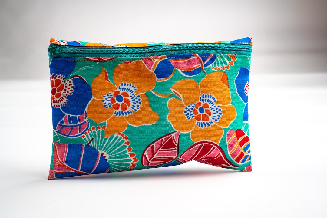 Elaborada a partir de retazos reciclados y telas de confección, dando una nueva vida a cada material. Su diseño exclusivo asegura que cada pieza sea única, sin réplicas. Cuenta con un práctico cierre de cremallera, brindando seguridad y comodidad para guardar tus esenciales de manera ordenada y estilizada.