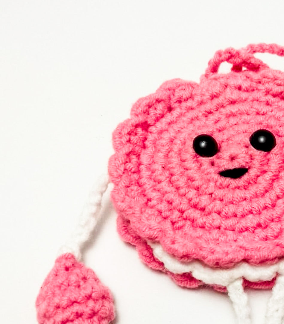 Lleva contigo un toque artesanal y único en cada recorrido con Daysi Rosado, un encantador colgante para autos elaborado 100% a mano por mujeres emprendedoras. Tejido en punto bajo con hilos de algodón y estructura de alambre reciclado, este diseño en forma de galleta rosada no solo decora, sino que transmite ternura, estilo y compromiso con lo hecho a mano.