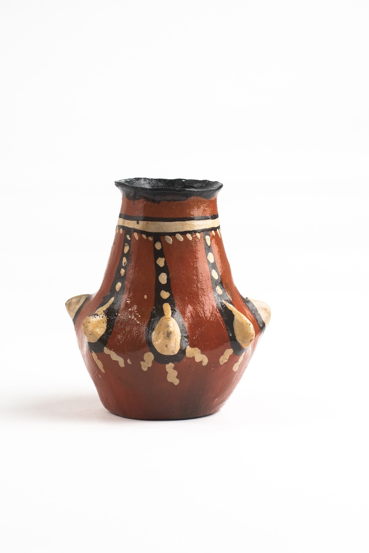 Pieza artesanal hecha con pigmentos de colores y barniz 100% natural, diseñado en forma de cuernos de animales. Representa la fusión entre tradición y naturaleza.