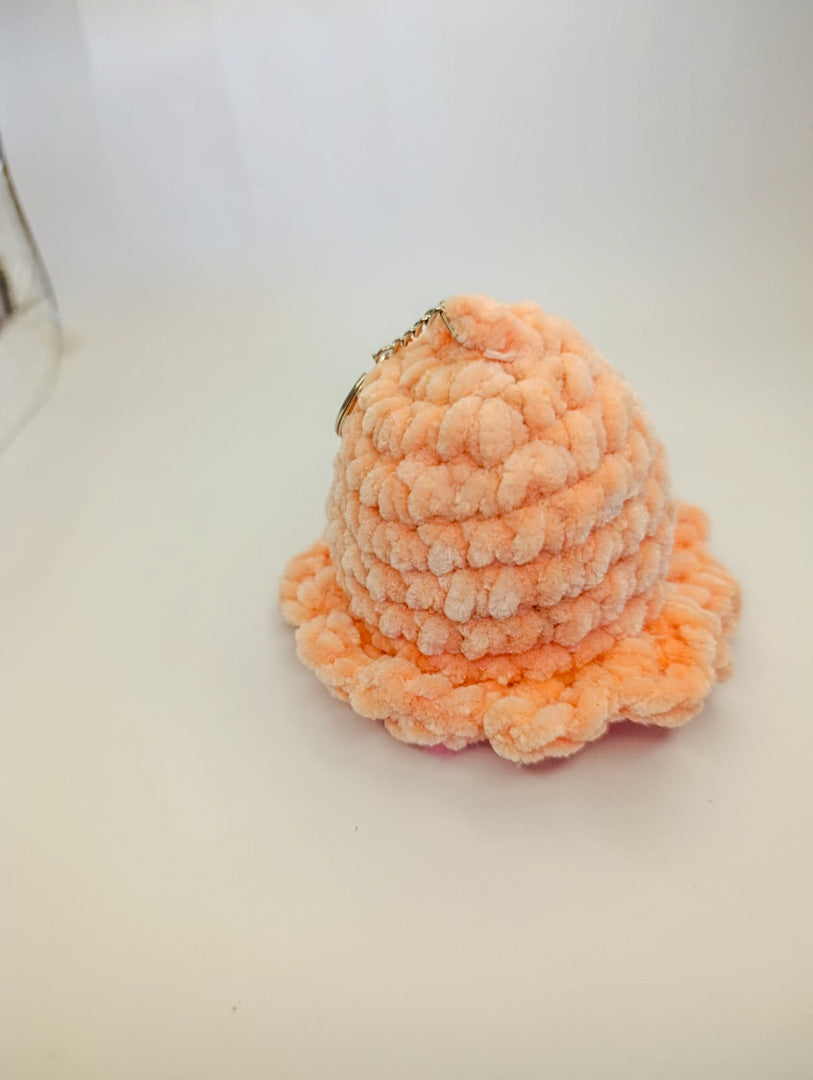 Dale un toque alegre a tu día con Medusa Luca, un adorable llavero tejido a mano en suave hilo chenille y un vibrante color melón, que ilumina cualquier bolso, mochila o juego de llaves. con relleno de plumón.