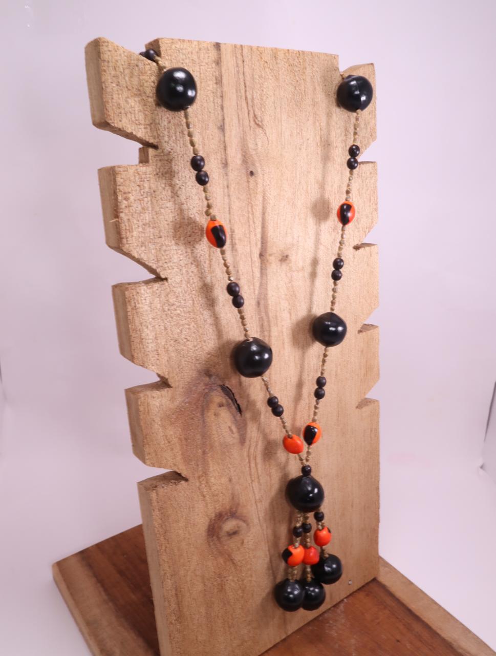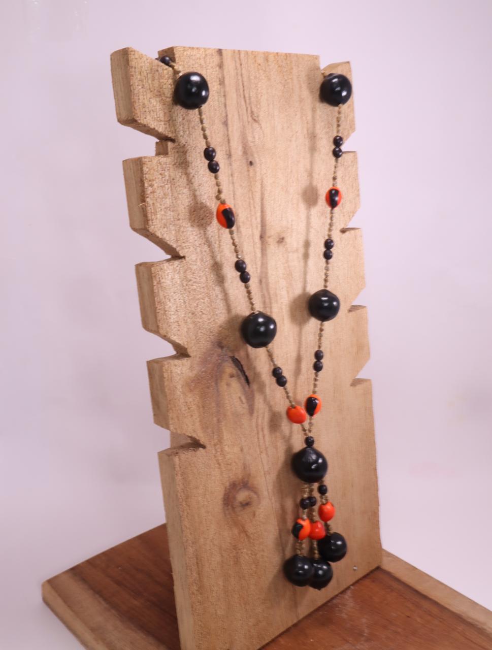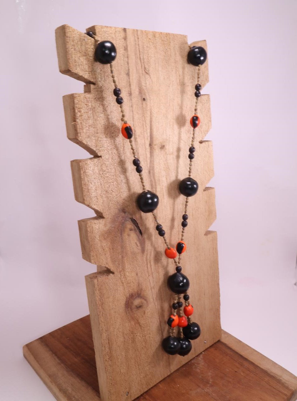 Estilo y conexión natural. Luce un pedazo de la selva con este collar artesanal hecho con semillas de huayruro y jaboncillo. Su combinación de tonos negros y rojos vibrantes no solo resalta cualquier atuendo, sino que conecta con la energía ancestral de la tierra.