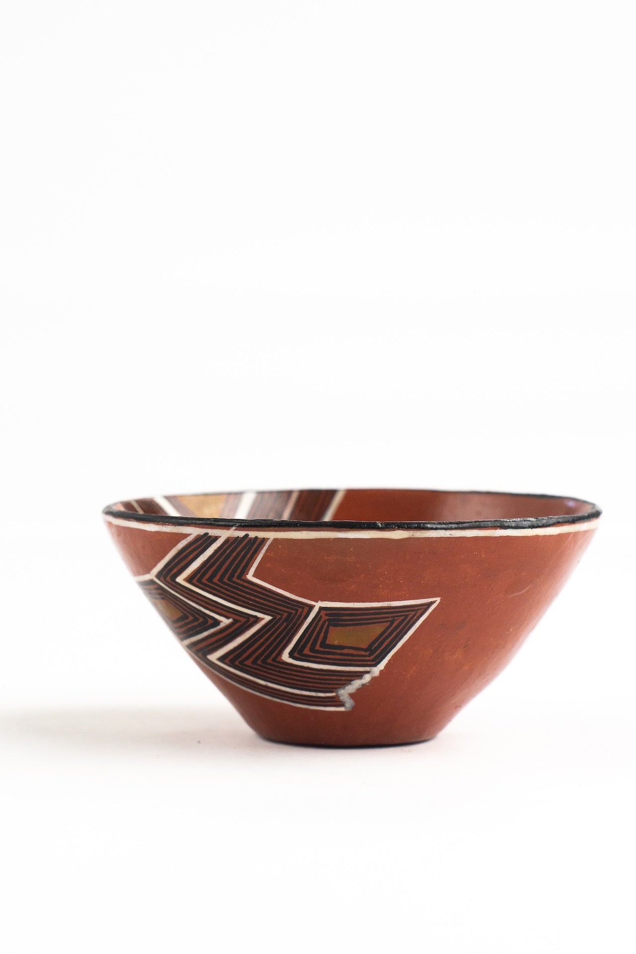 Vasijas miniatura con patrones ondulados inspirados en la naturaleza y los sueños. Piezas únicas que cuentan historias a través de sus diseños.